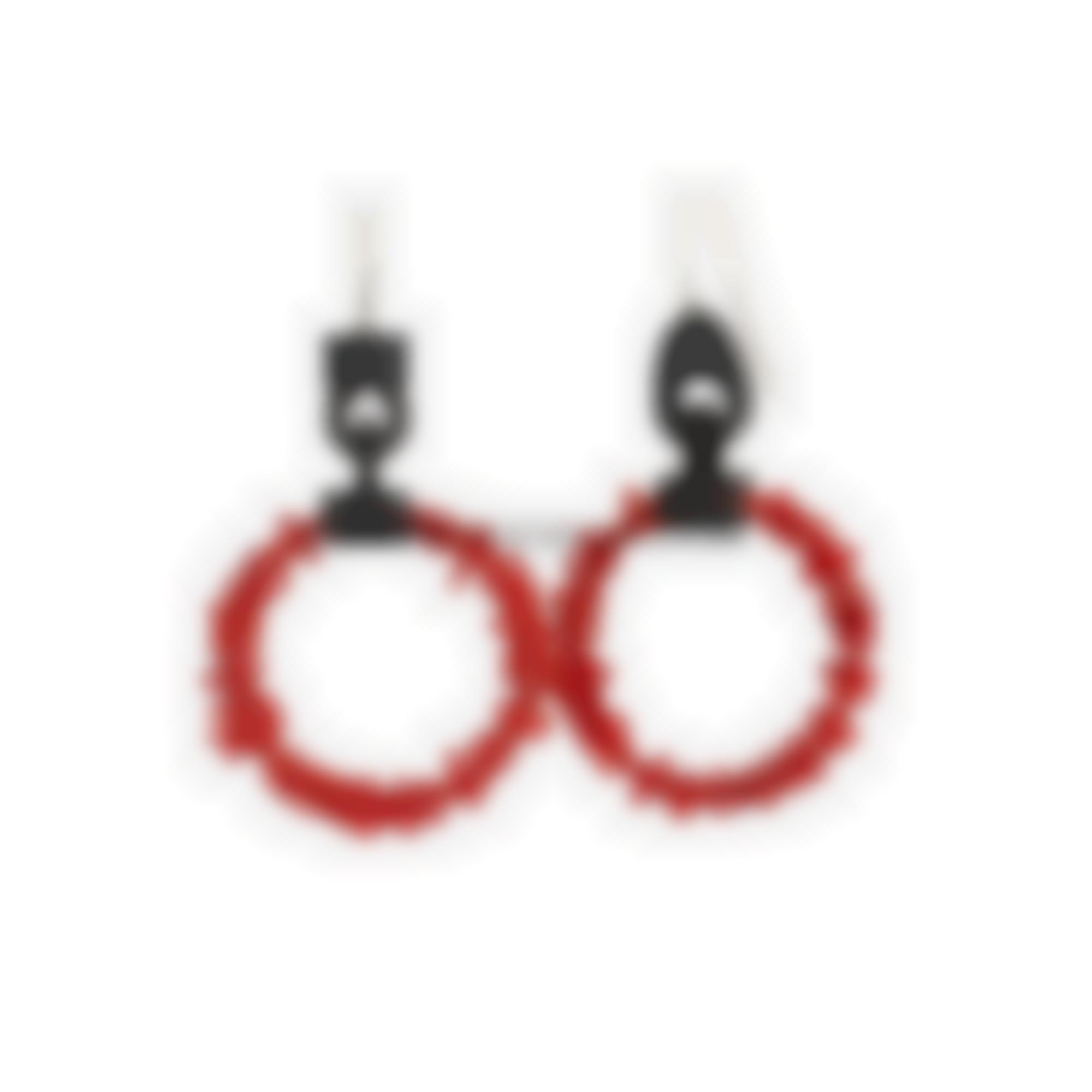 Cupolini Mediterranean red coral earrings in the shape of a circle, with ebony and 925/000 silver.