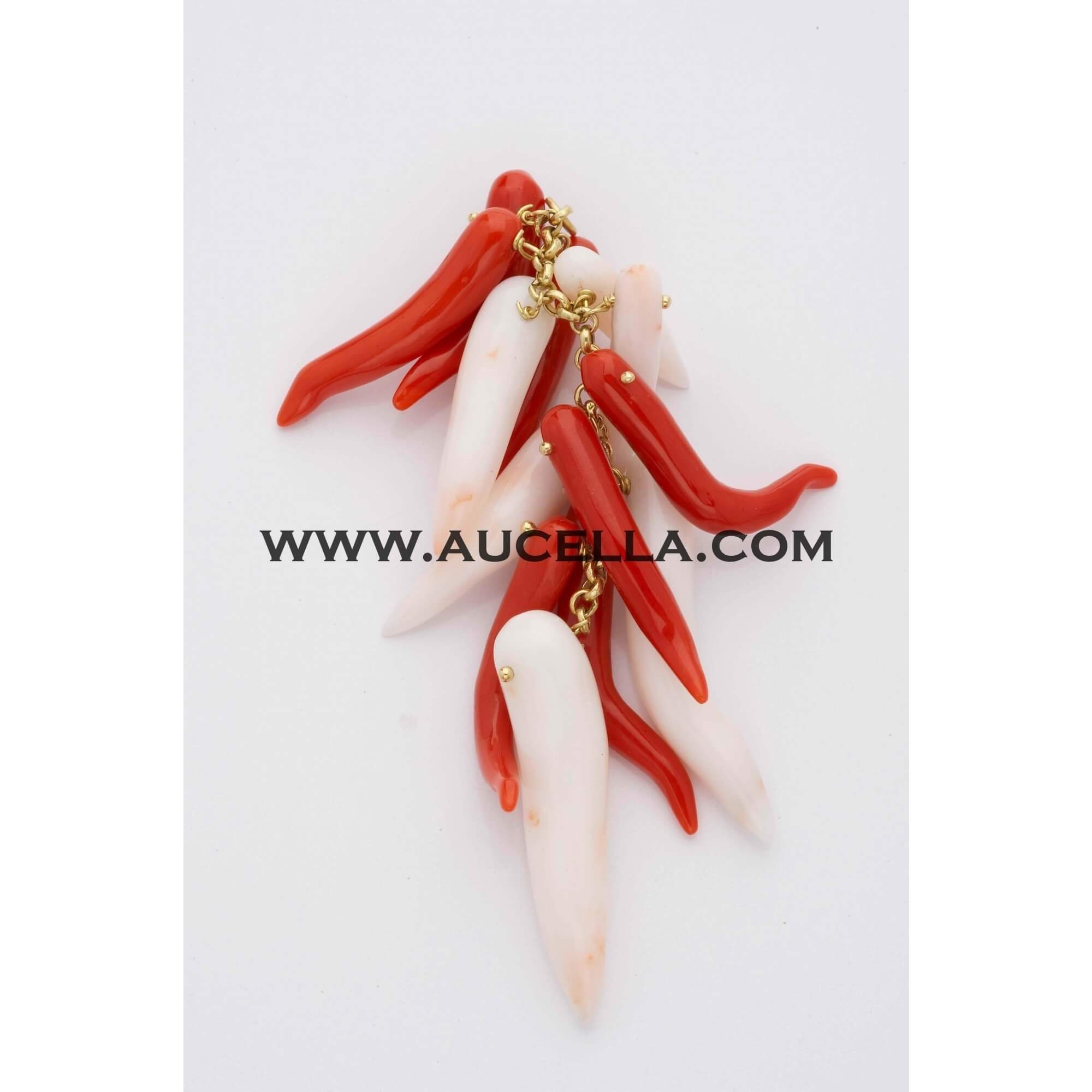 Pendant set in gold 750/1000 with red and pink coral horns