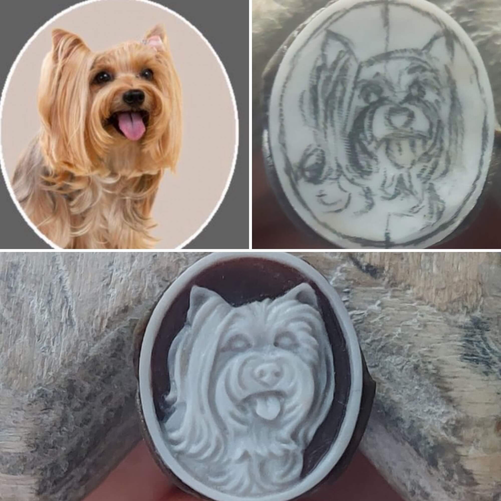 A cameo celebrating your loyal four-legged friend: an engraving on sardonyx shell that makes their memory eternal. Each cameo is handmade, from sketch to final jewel, and can become a pendant, ring, or bracelet. An artisanal excellence Made in Torre del Greco.