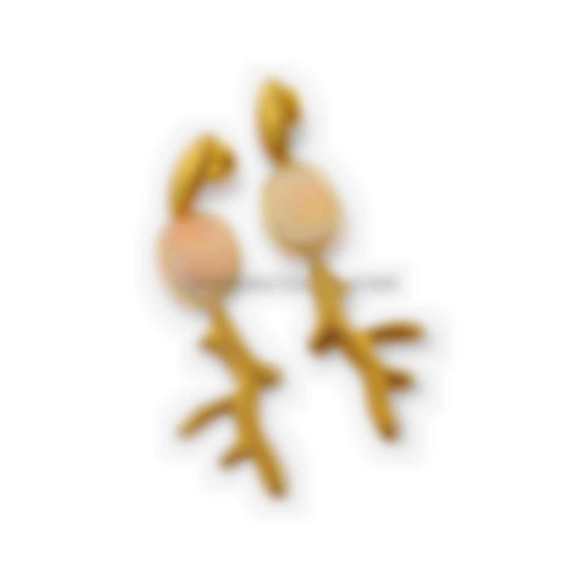 Natural pink coral earrings - scientific name corallium secundum - mounted in yellow 925 silver with electroforming elements.